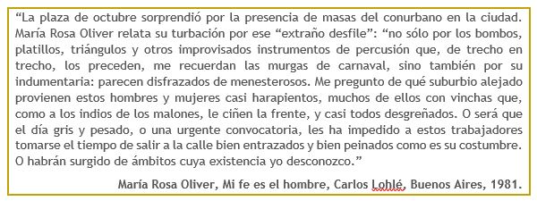 Aquel episodio transformó el escenario político argentino. Un sector de la sociedad hasta entonces marginado de las decisiones políticas, se hizo protagonista y ocupó el centro “simbólico” del poder, la Plaza de Mayo.