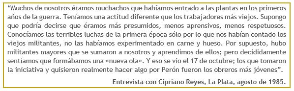 El 17 de octubre de 1945, los obreros que trabajaban y residían en los suburbios ingresaron a Buenos Aires. Las columnas se dirigieron a la Plaza de Mayo para reclamar la liberación del coronel Perón.