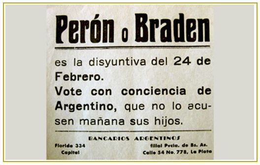 La oposición a Perón se aglutinó en la “Unión Democrática”. Radicales, socialistas, comunistas y demócrata-progresistas se unieron tras la fórmula presidencial integrada por los radicales José Pascual Tamborini y Enrique Mosca, que contó con el apoyo de la juventud universitaria, de sindicalistas opuestos a Perón, de entidades profesionales, de importantes diarios, de la Sociedad Rural Argentina y de la Bolsa de Comercio. Era una coalición que expresaba a los grupos y sectores sociales más prósperos del país y con el lema “Por la libertad y contra el fascismo”, consiguió importantes adhesiones dentro y fuera del país. Un ejemplo de ello es la actuación del embajador de los Estados Unidos, Spruille Braden, quien intervino abiertamente en la campaña electoral para impedir el triunfo de Perón. La reacción del gobierno argentino hizo que el presidente norteamericano desplazara a Braden, pero continuó combatiendo el avance de lo que consideraba una “dictadura fascista”.