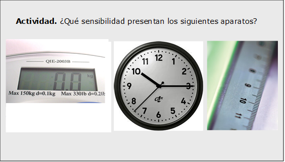 Una característica muy importante de los instrumentos de medición es la sensibilidad. La sensibilidad de un instrumento está dada por la mínima porción de magnitud que puede registrar. Es decir, qué tan finamente está dividida la escala del instrumento de medición.