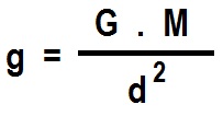 El valor de g depende de la constante de gravitación universal (G), de la masa de nuestro planeta (M) y del cuadrado de la distancia que hay desde su centro hasta el objeto (d2):