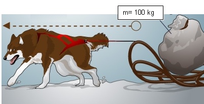Este perro debe mover una masa de 100 kg. Si le imprime una aceleración de 2 m/s2 ¿cuál será la fuerza que está realizando?