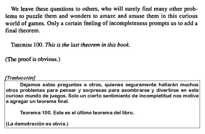 A modo de despedida citaremos este teorema que John Conway incluyó en su libro On numbers and games (1976).