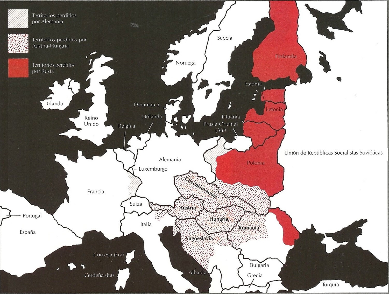 Por un lado, debemos tener en cuenta que el mapa europeo se reconfiguró en 1918: el hundimiento de los imperios Austrohúngaro, Alemán y Ruso dio paso a la creación de numerosos estados: tal es el caso de Polonia, Checoslovaquia, Yugoslavia, Finlandia, entre otros.