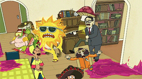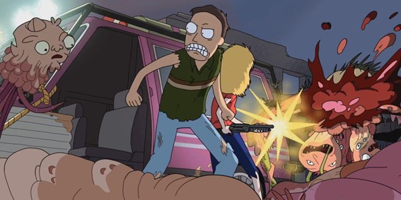 Todo el mundo que no comparte información genética con Morty, es decir, todos excepto su familia, se vuelven monstruos horripilantes y violentos. Su apariencia tiene el estilo de los monstruos de las películas del director David Cronenberg. Sin otra salida, Rick toma una decisión drástica: con su pistola de portal interdimensional viaja junto a Morty a un universo paralelo donde nunca sucedió la catástrofe y además sus variantes, el Rick y el Morty de ese universo, han muerto en un accidente. Aquellos ocupan el lugar de estos sin que nadie que se percate del cambio –por lo menos en la primera temporada.