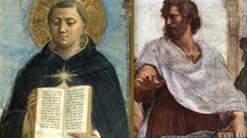 Tomás de Aquino (izq.) y Aristóteles (der.)