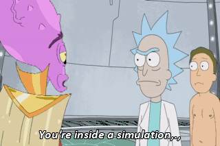En el capítulo 4 de la primera temporada de Rick y Morty, titulado en español "La simulación alienígena", los Zigerions, un grupo de embusteros extraterrestres, someten a Rick a una sofisticadísima simulación virtual de la realidad para que confiese su fórmula secreta de materia oscura concentrada. Este compuesto es un potentísimo combustible en el universo de la serie. Esta simulación recrea todo tipo de realidades a partir de procesamientos de computadora: sensaciones, objetos, personas.