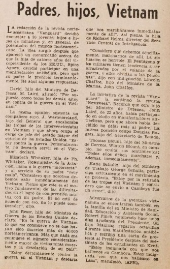 Fuente: Sin firma, “Padres, hijos, Vietnam”, año XVI, nº 349, 2 de julio de 1970, p.2.
