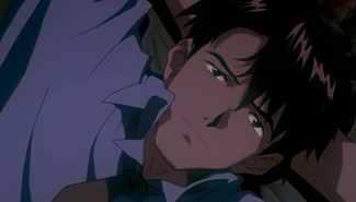 Kaji (Evangelion) desconfiando de los planes de la organización Nerv