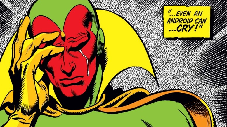 Vision (Marvel Comics), llorando luego de ser creado como androide sintético