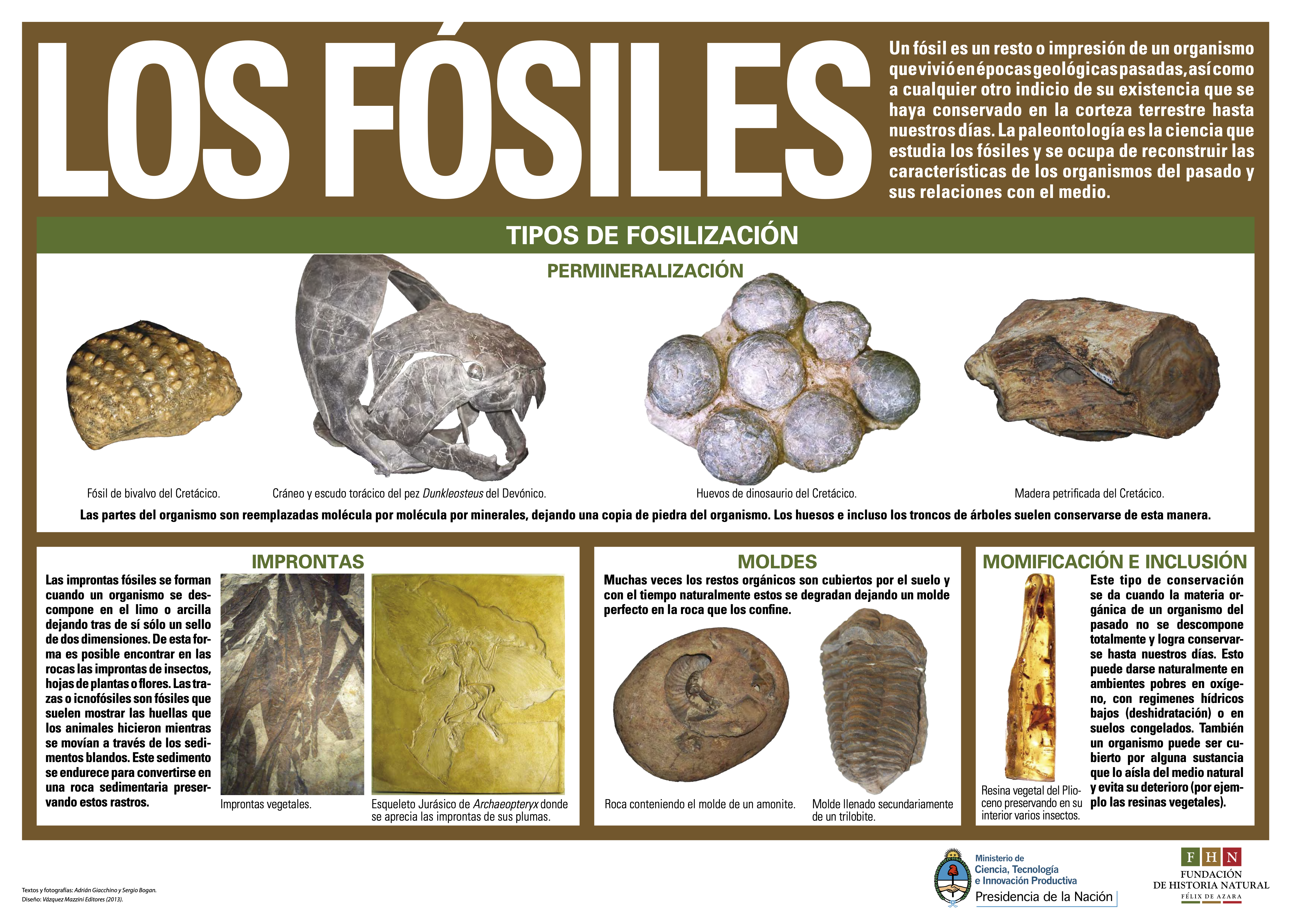 Figura 3. Fósiles. Tipos y procesos de fosilización. Fuente: Infografía de la Fundación de historia natural Félix de Azara (https://www.fundacionazara.org.ar/img/recursos-educativos/los-fosiles.pdf