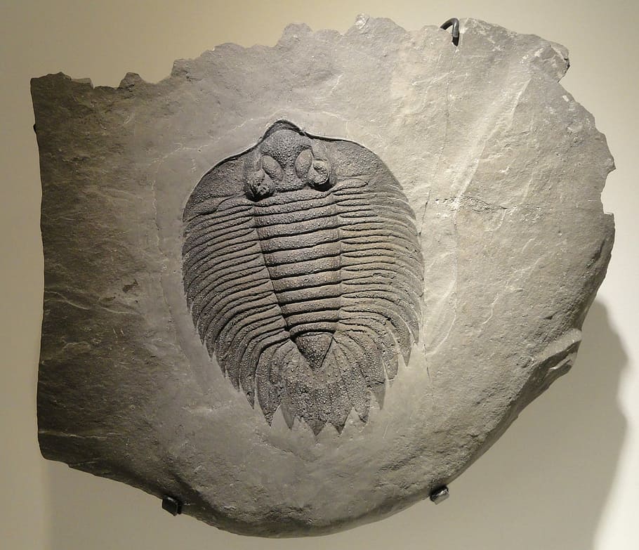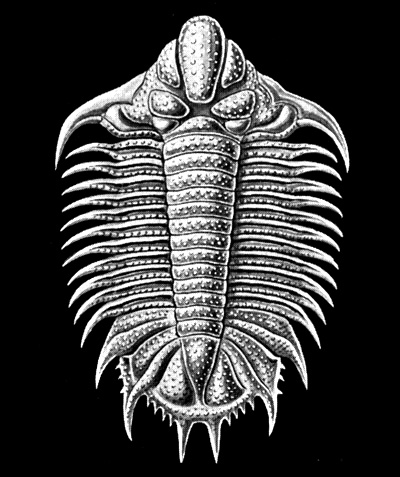 Figura 17: Impronta de trilobite, molde de trilobite e ilustración del naturalista Ernst Haeckel. Los trilobites son un grupo de artrópodos marinos extintos. Se encontraban ampliamente distribuidos geográficamente y existía una gran diversidad de formas en este grupo. Los fósiles más antiguos encontrados se estima que tienen una antigüedad mayor a 500 Ma.