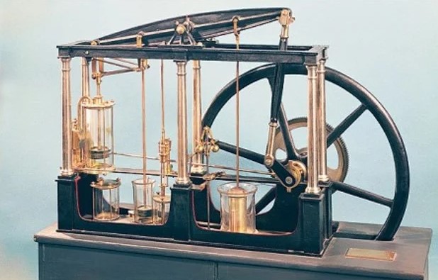 Sin duda, la máquina de vapor fue una de las transformaciones más representativas del proceso revolucionario industrial, al igual que el nombre del científico escocés que la patentó, James Watt. ¿Pero en qué consistía y por qué fue trascendental en el proceso de producción? Básicamente, dicha máquina implementó una nueva fuente de energía inanimada (térmica) que se basaba en la utilización del calor (a través de la quema de combustible -carbón-) y a partir de ella se obtenía fuerza y movimiento. Si bien es cierto que ya existían otras maquinarias que funcionaban a partir de la energía eólica e hidráulica, la máquina a vapor tenía grandes ventajas para la producción, ya que su utilización no dependía de las condiciones climáticas (presencia de viento), o bien, de la ubicación geográfica (cercanía de ríos). A su vez, estas máquinas imprimían una velocidad que posibilitaban la multiplicación del trabajo llevado a cabo por cada trabajador/a.
