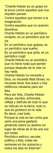 Un caso que tuvo gran resonancia en el globo y que posibilita analizar la relación entre terrorismo, redes y libertad de expresión, es el atentado que un grupo fundamentalista islámico llevó a cabo contra la redacción del semanario satírico Charlie Hebdo, luego de la publicación de una serie de caricaturas de Mahoma, el 7 de enero de 2015 en París. Este hecho que terminó con la vida de doce trabajadores se diseminó de inmediato por los medios masivos de comunicación y las redes sociales, lo que suscitó diversos debates entre los que sobresalieron las relaciones complejas entre el humor gráfico, la política y la libertad de expresión.