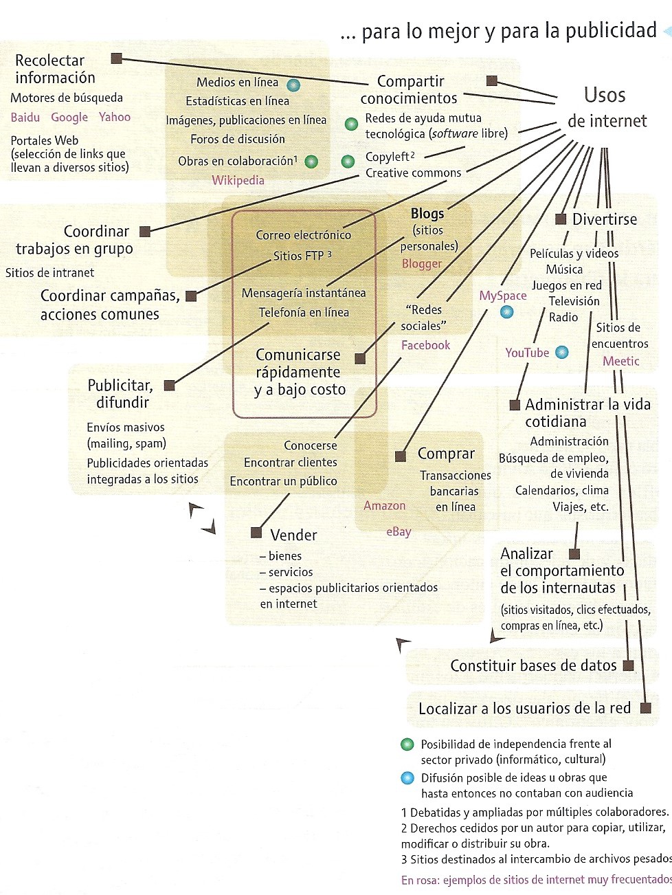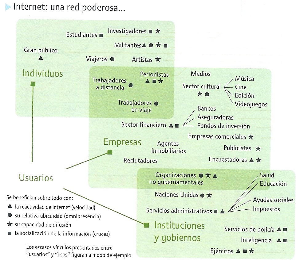En los siguientes cuadros conceptuales pueden observar algunos ejemplos sobre los diversos usuarios y usos de internet.