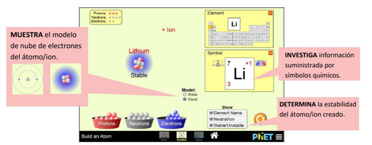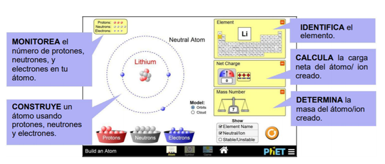 Desde la pantalla ÁTOMO del simulador pueden realizar las siguientes actividades: