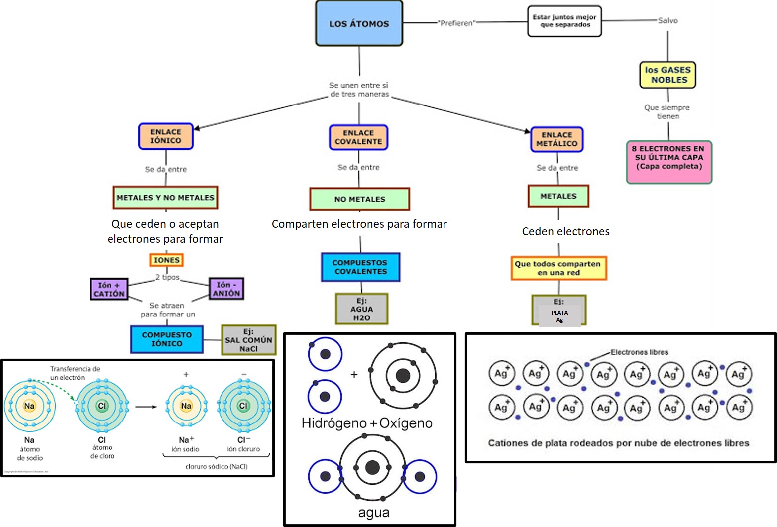 En el siguiente cuadro sinóptico se sintetizan las principales características de estos tres tipos de enlaces químicos: